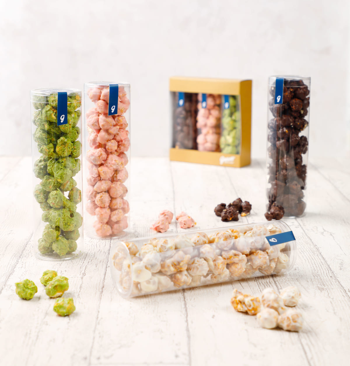 見ているだけで楽しくなるようなカラフルさとフレーバーでワクワク感満載のポップコーン。