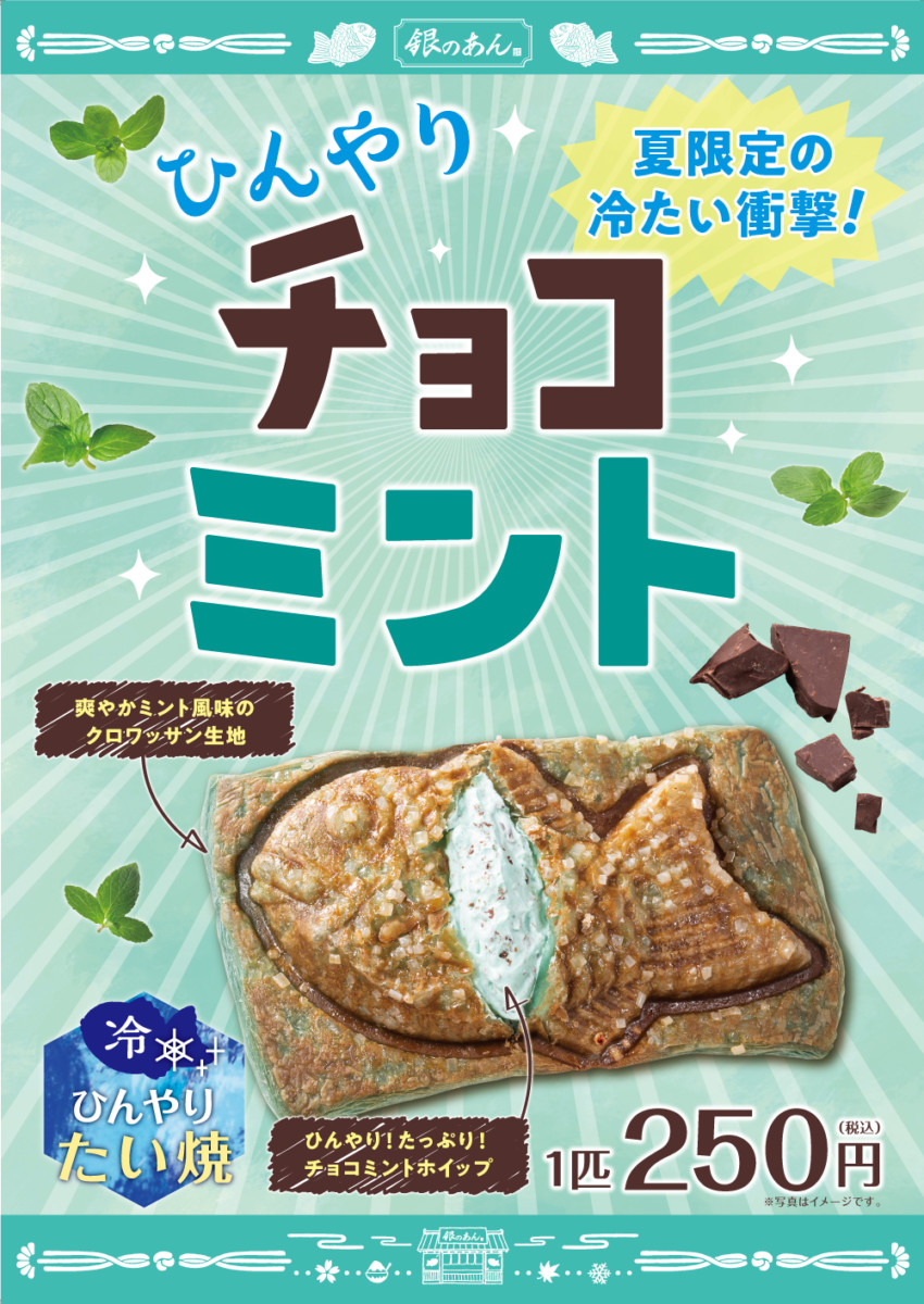 銀のあんで人気のクロワッサンたい焼きシリーズに、夏限定の新作「ひんやりチョコミント」が登場!