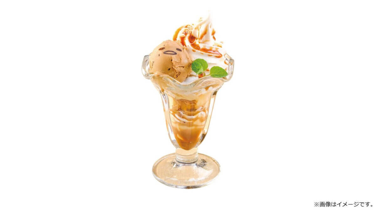 トップに鎮座するキャラメルプリンには、ぐでたまの顔が☆