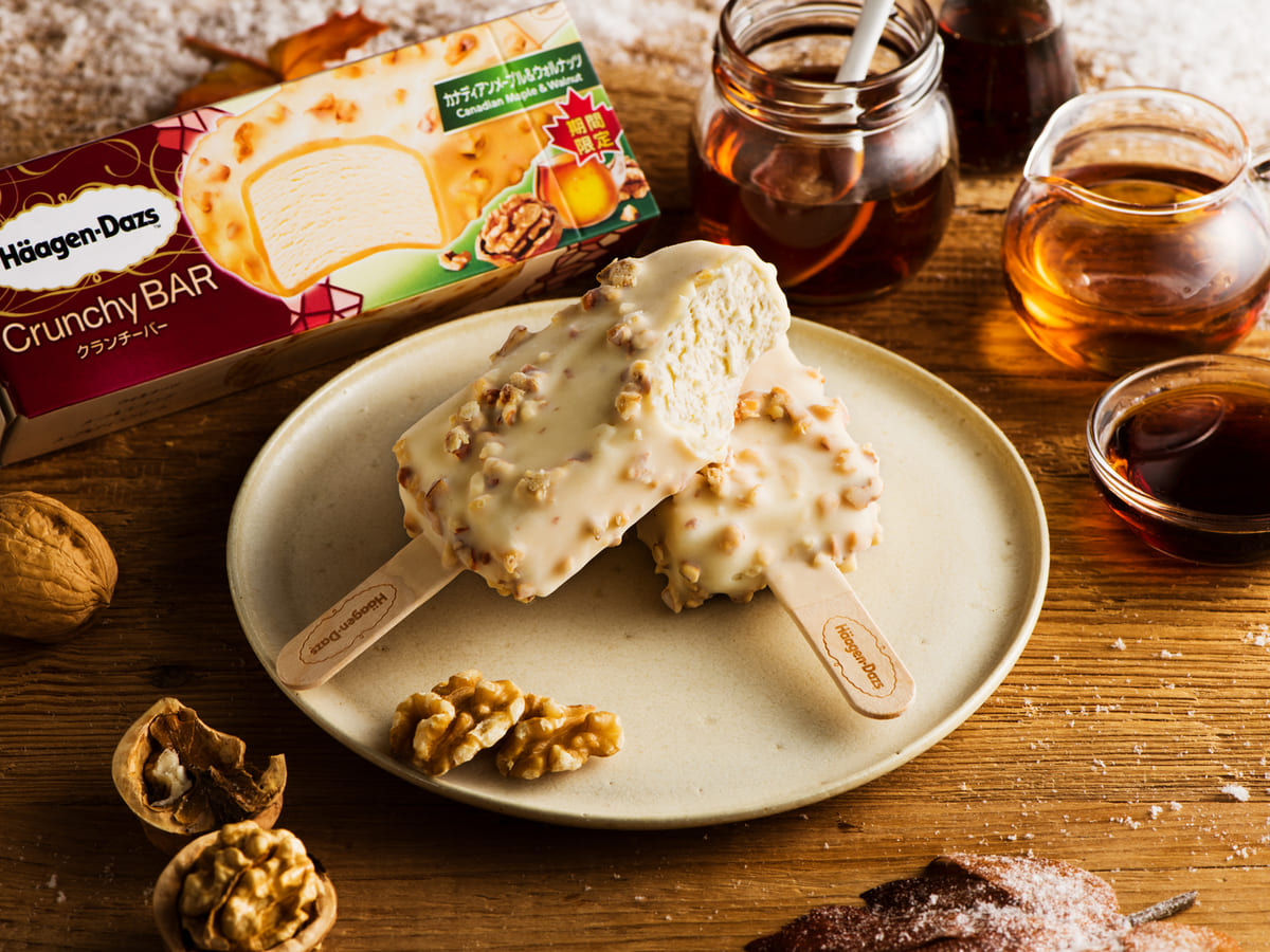 ハーゲンダッツから、人気の組み合わせ"メープル"と"ウォルナッツ(クルミ)"を使ったクランチーバーが登場!