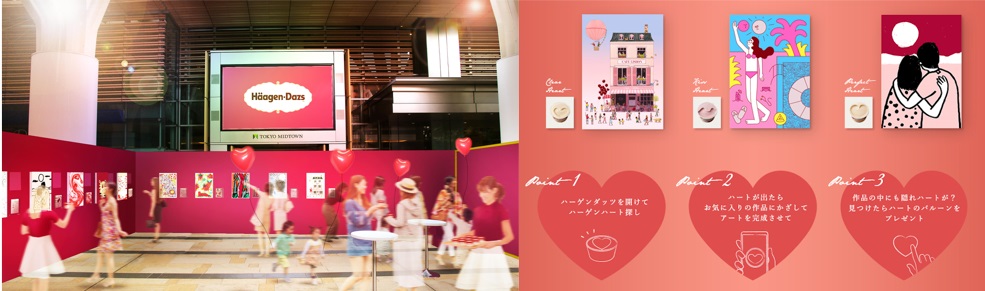 それぞれの作品の中にはハートが1つ隠れており、見事見つけた人にはハーゲンダッツオリジナルバルーンがもらえます!