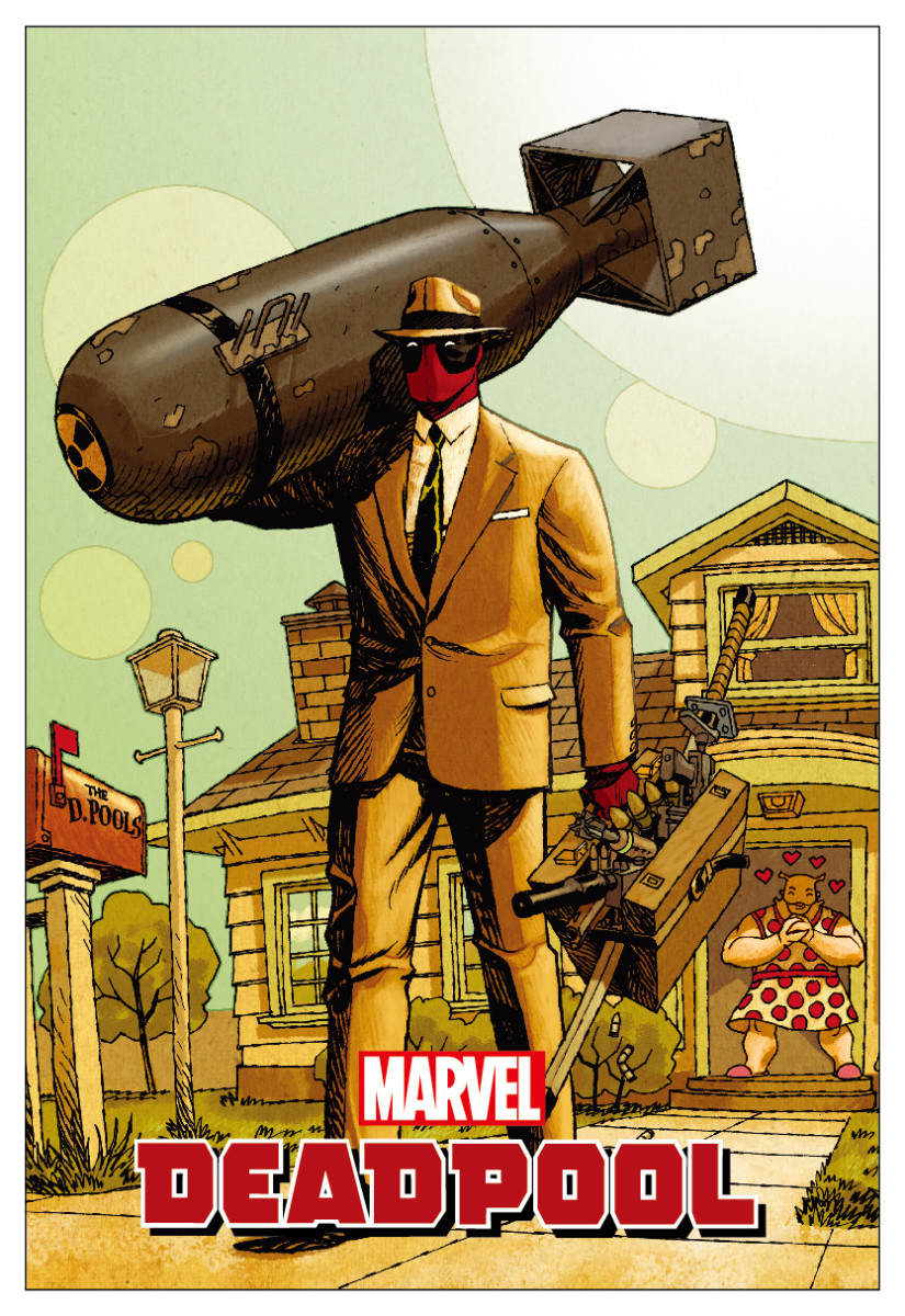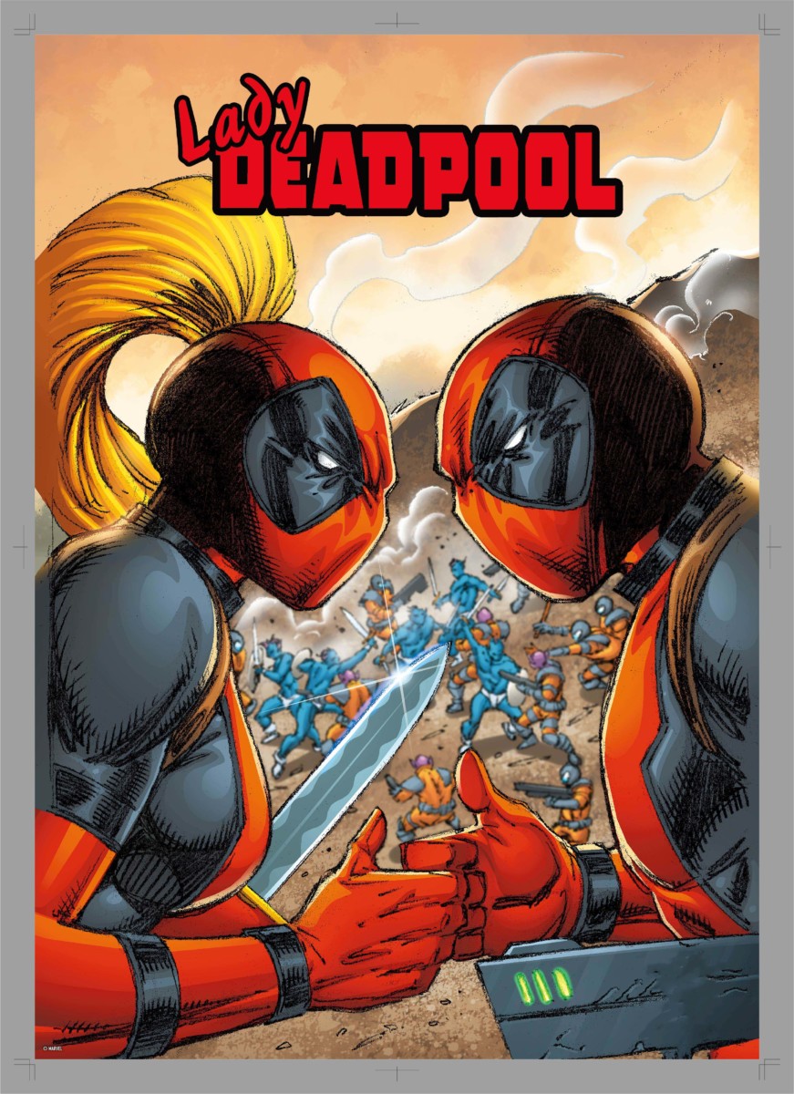 『デッドプール』の平行世界で活躍する「レディ・デッドプール」と共闘を交わすシーンが描かれたものが登場します。