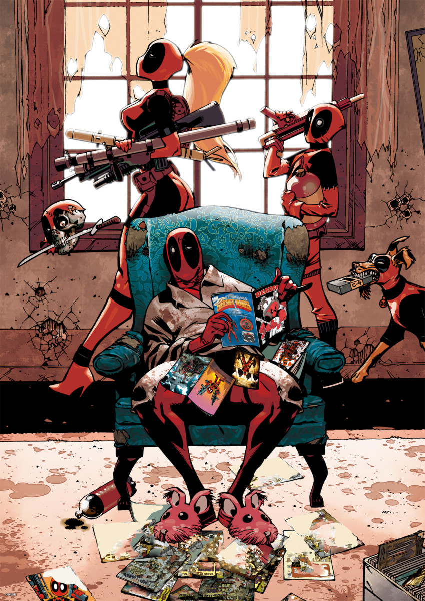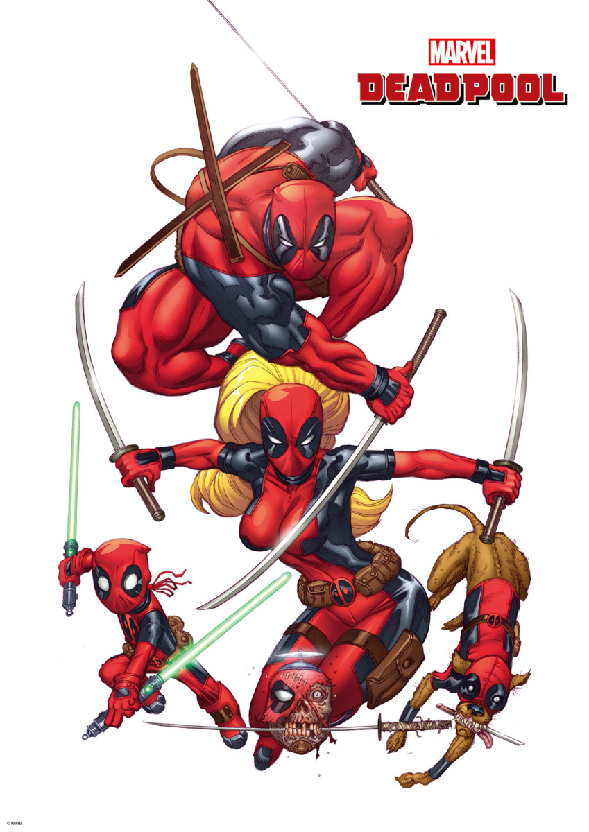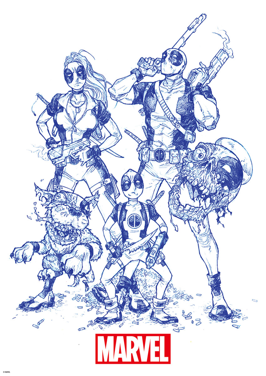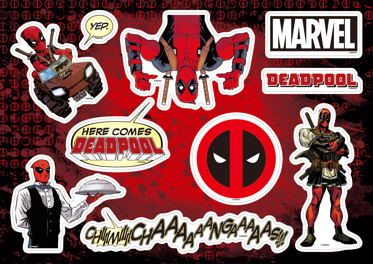 キャラクター全員が「デッドプール」の衣装を着用したコミックタッチのアイテム