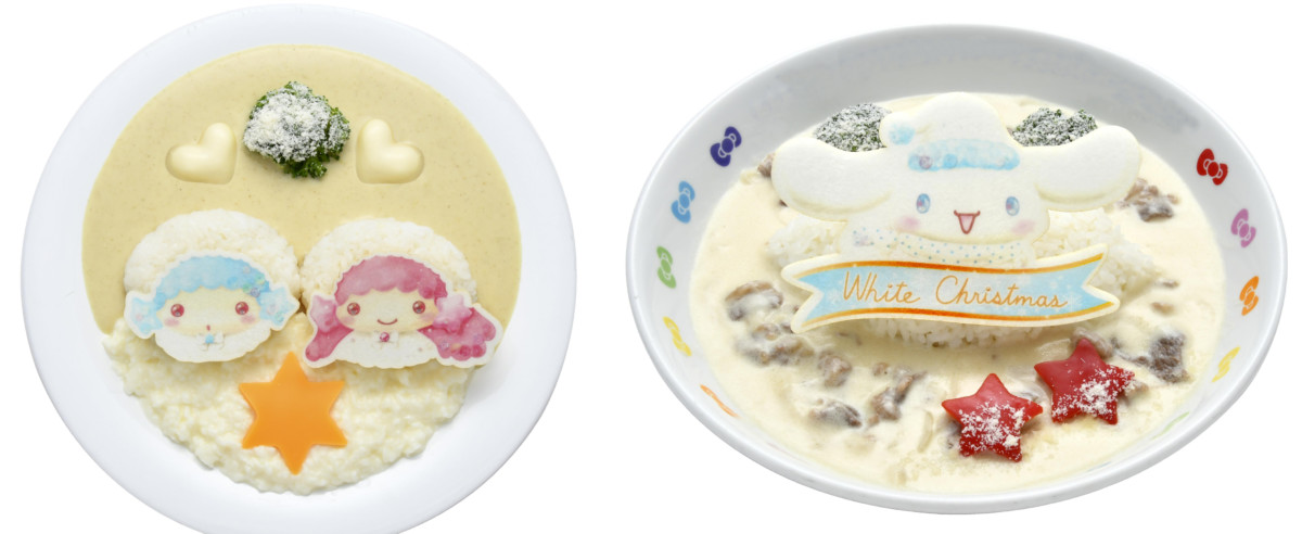 画像左より、「キキ&ララのホワイトクリスマスカレー」、「シナモンのホワイトストロガノフ」