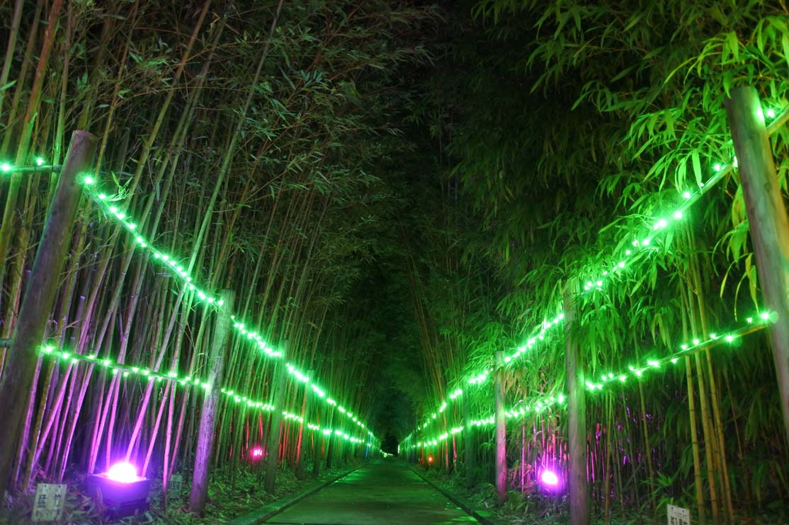 全長約1kmにわたる竹と光のアートイルミネーションが幻想的な「光の七夕伝説エリア」