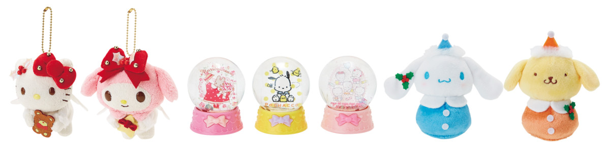 画像左より、「マスコットホルダー」、「ミニスノーグローブ」、「おてのりドール」