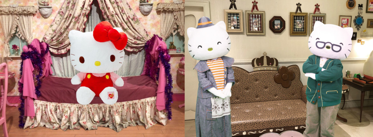 (写真右)ソファではキティのパパとママと一緒に写真撮影!