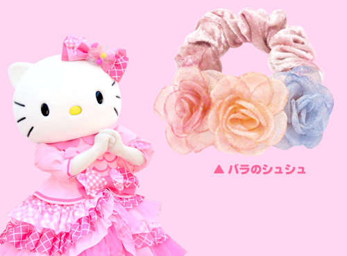 キティにバラのミニ花束をプレゼントすると、お礼にキティからバラのシュシュがもらえるイベントを開催!