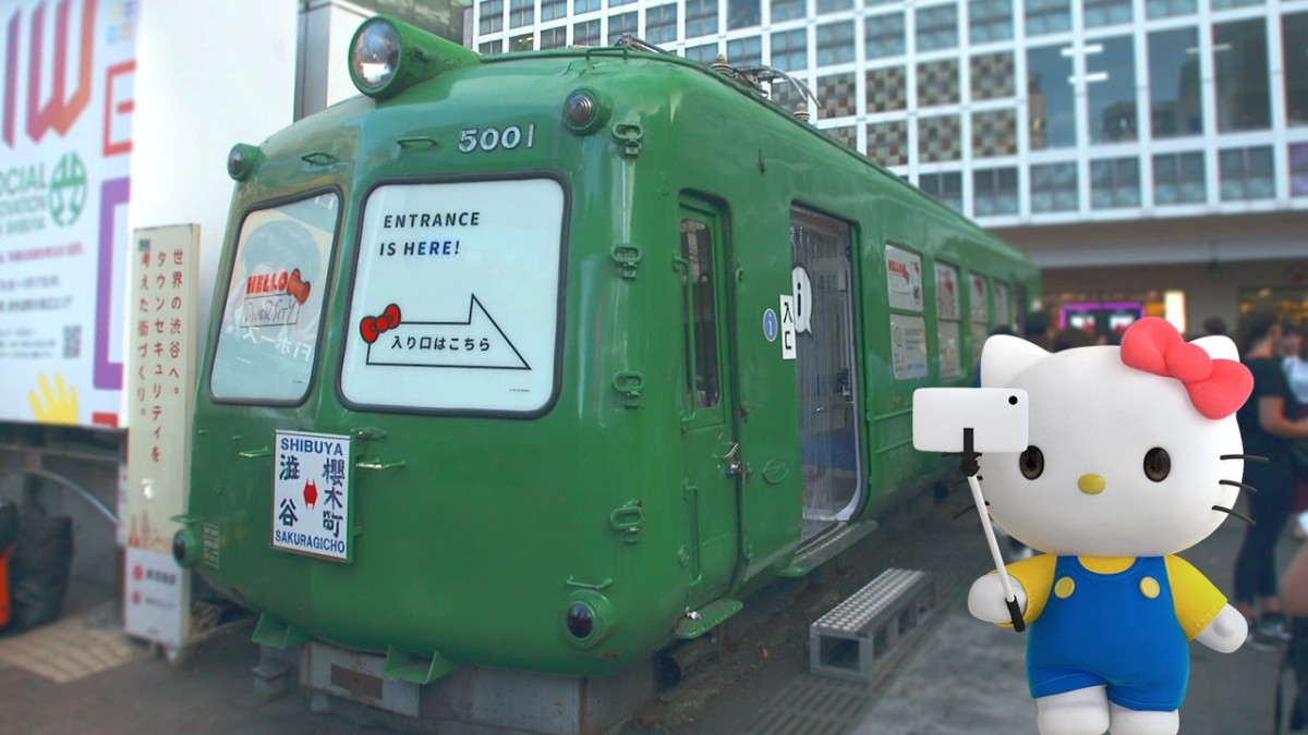 渋谷・ハチ公前広場の観光案内所「青ガエル」を「キティ ダイバーシティ版」にラッピング!