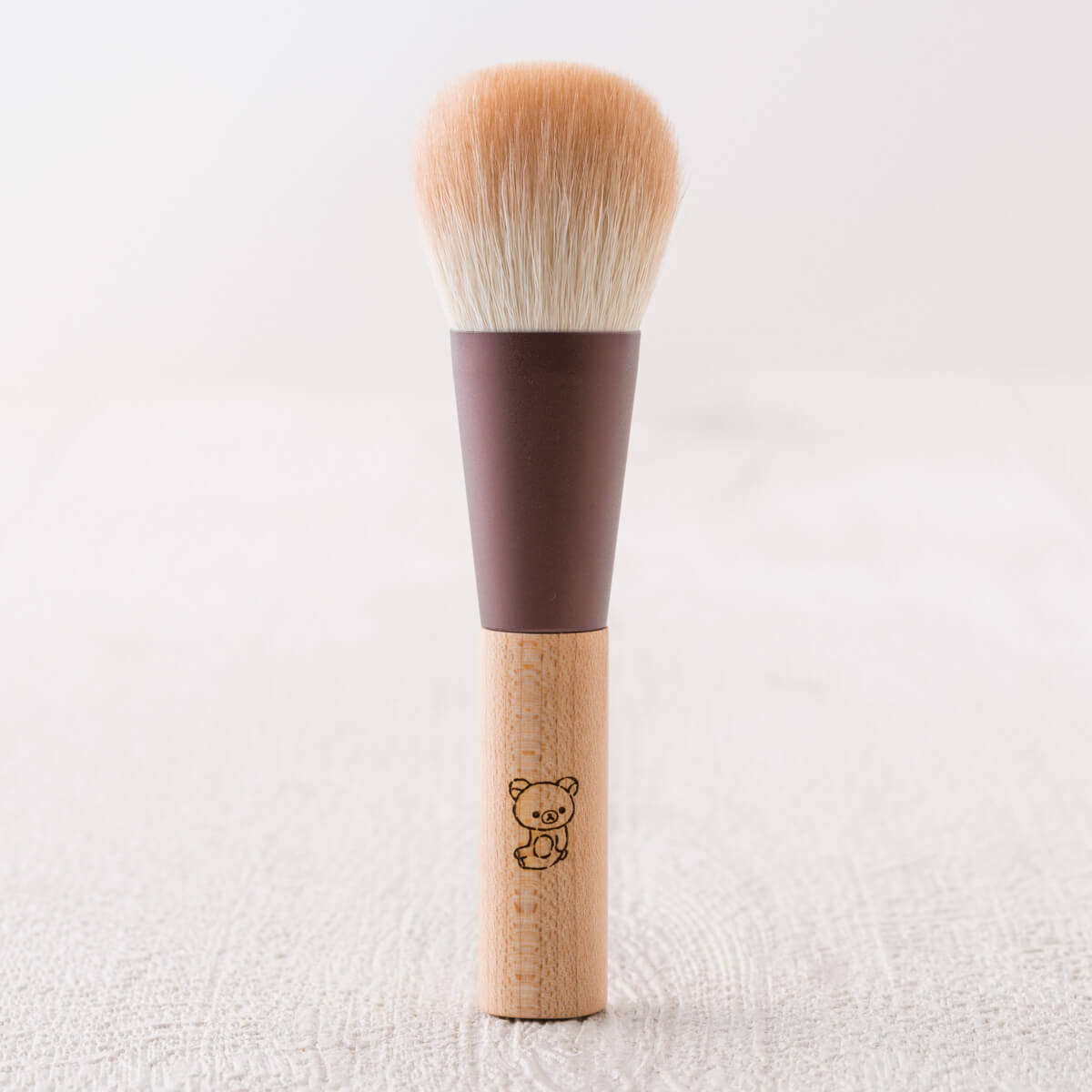 コリラックマをイメージした、ピンクの染色毛がかわいいチークブラシです。
