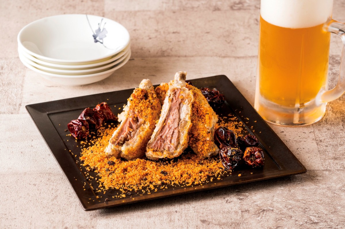 黄金のスパイシーパウダーで仕上げられたお肉は箸を入れるだけで、骨からほろっと外れるほど柔らか!