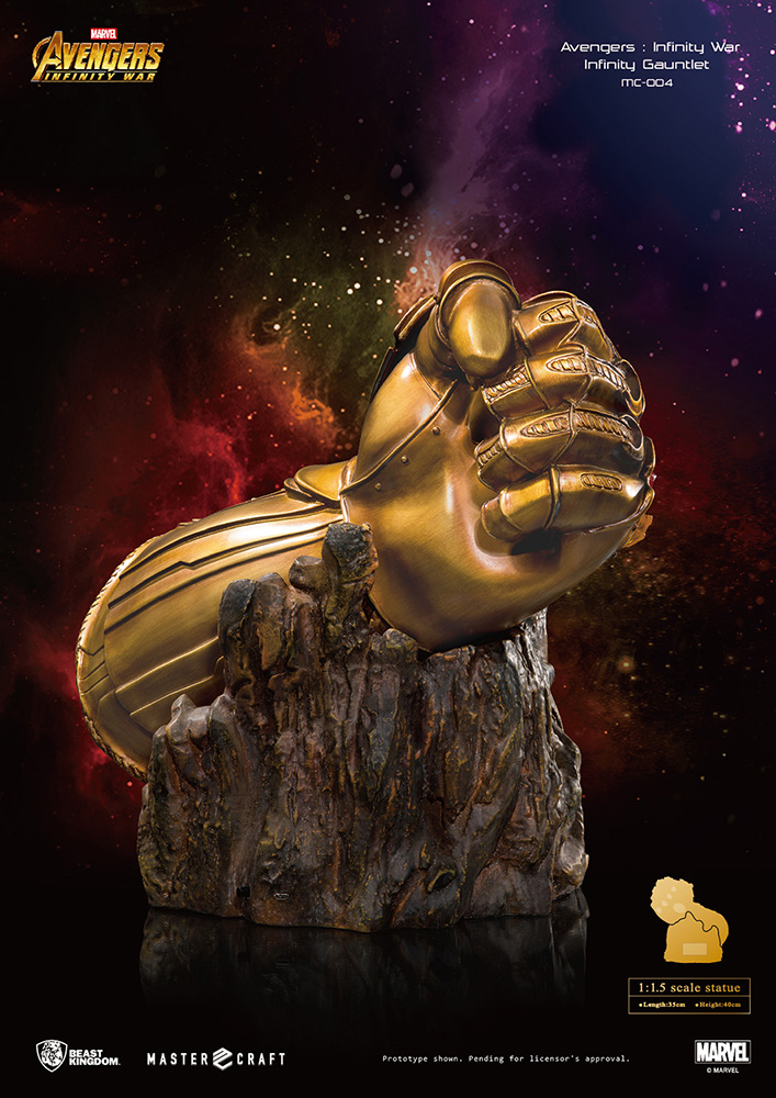そんな『アベンジャーズ/インフィニティ・ウォー』に登場するキーアイテム「インフィニティ・ガントレット」を、全高約40センチ、1/1.5スケールのスタチューとして立体化。