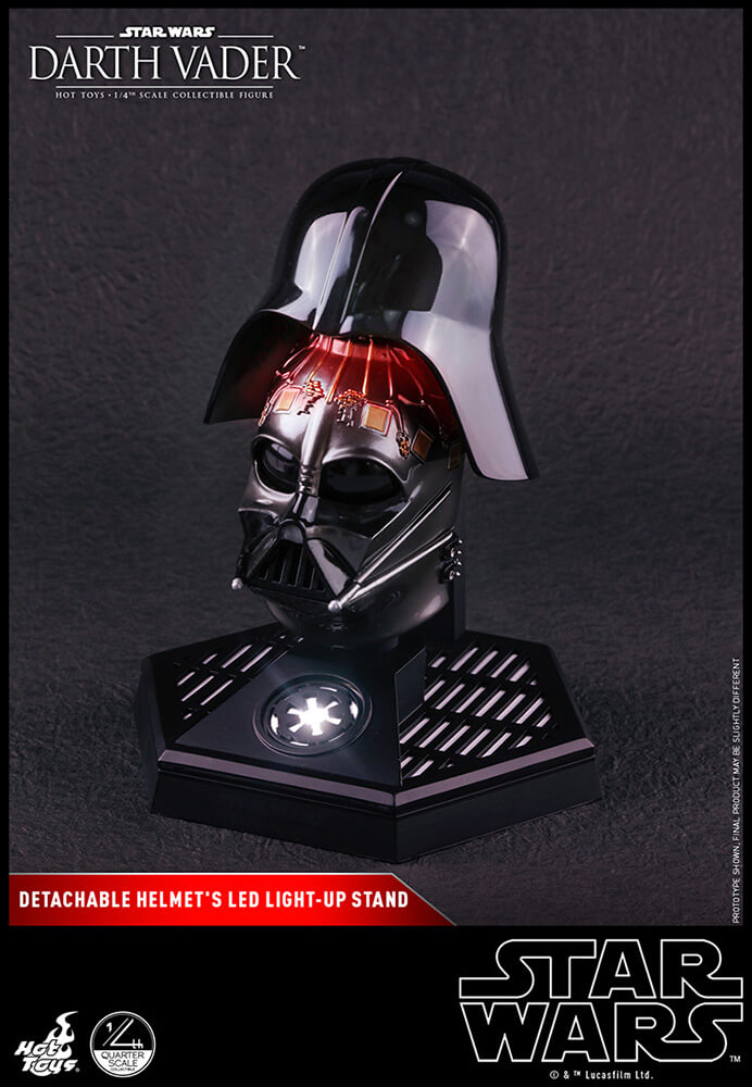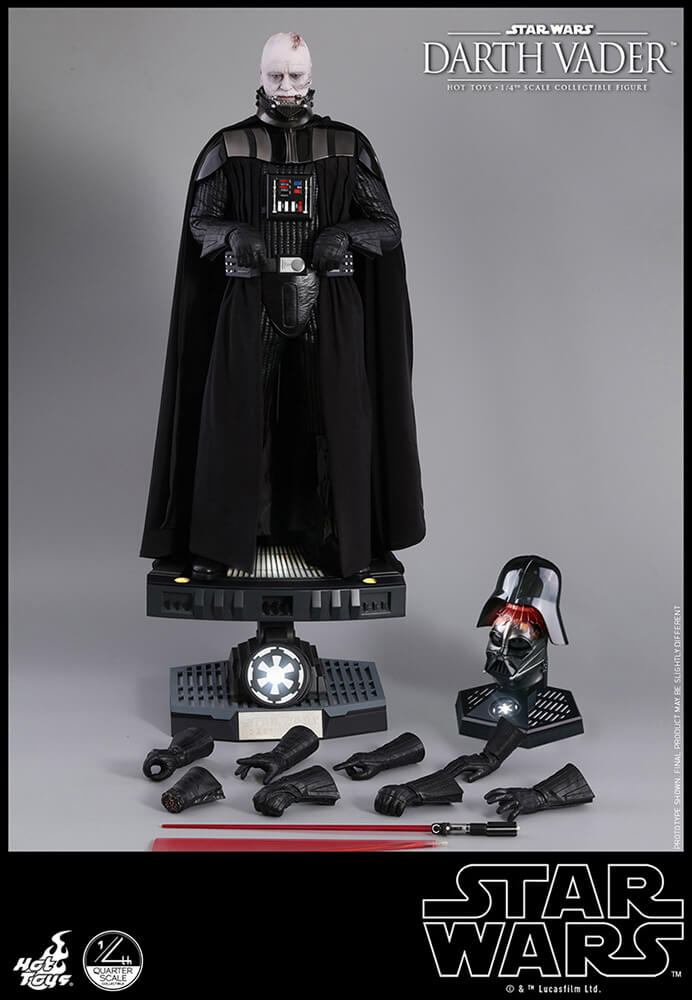 マスクとヘルメットは着脱ができ「ダース・ベイダー」を演じる俳優「セバスチャン・ショウ」の肖像権をクリアした素顔を露出することが可能。