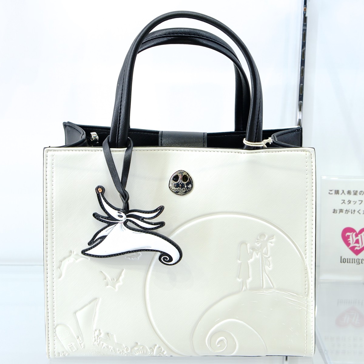 『ナイトメアー・ビフォア・クリスマス』のジャック・スケリントンとサリーのロマンティックなワンシーンを型押しで表現したバッグ。