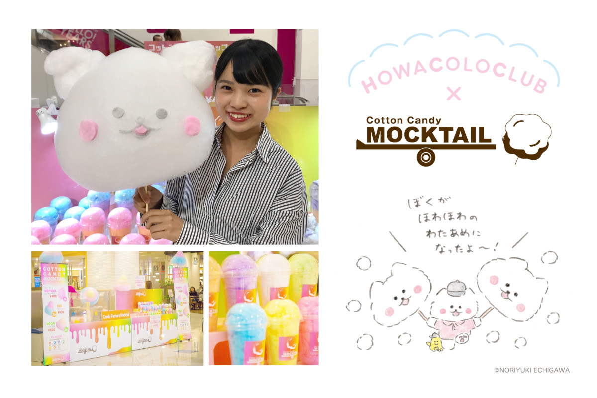 全国各地のイベントやショッピングモールで話題のわたあめを提供している「コットンキャンディモクテル」が、「ほわころちゃん」のイメージにピッタリマッチしたふわふわのジャンボわたあめを販売します!