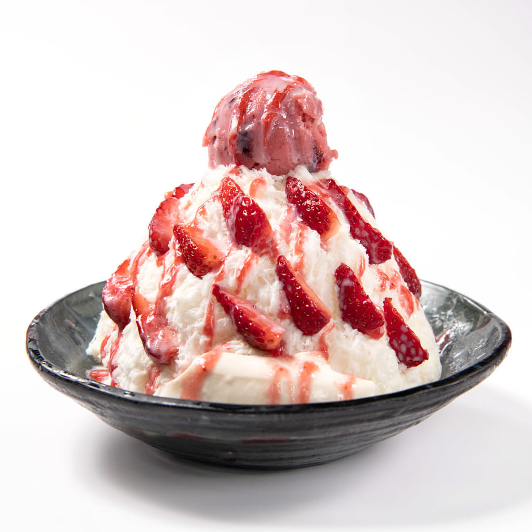 たっぷりのフレッシュイチゴとふんわり甘いホワイトチョコレートのハーモニーが楽しいかき氷。
