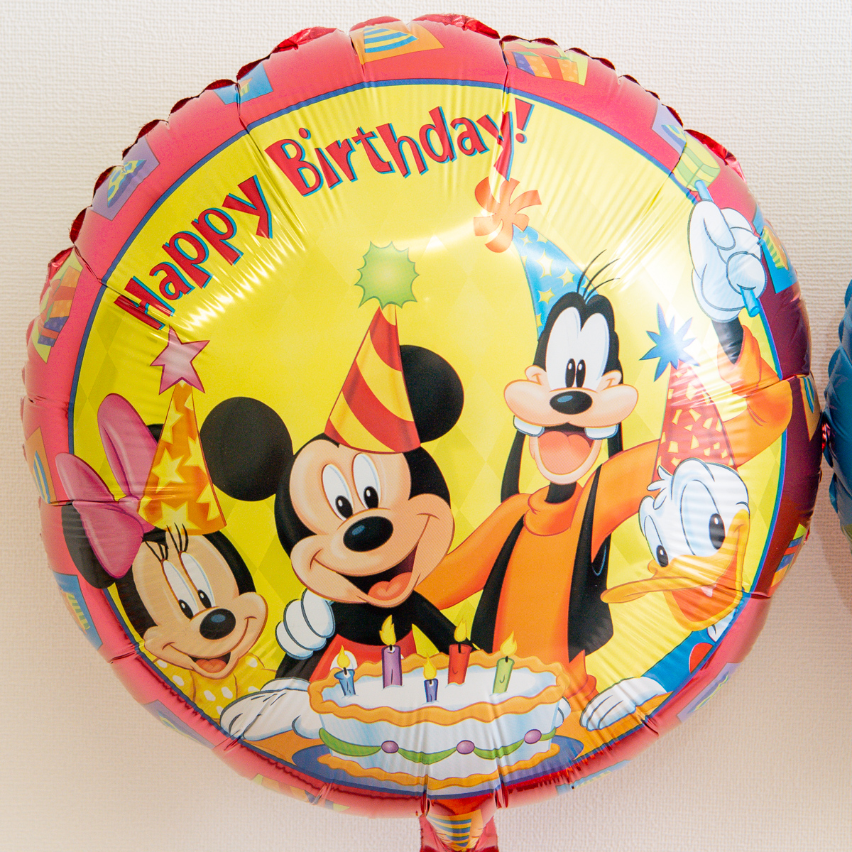 箱を開けた瞬間、「ミッキーマウス」、「ミニーマウス」、「ドナルドダック」、「グーフィー」がデザインされた「Happy Birthday」のバルーンがふわりと浮かんできます。