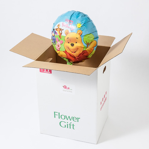 大きな箱を開けると「プーさん」と仲間たちがデザインされたバルーンがぷわぷわ浮かんでくるギフト。