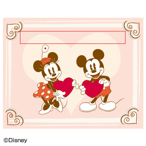 ミッキー&ミニーのアートに25文字以内でアルファベット大文字、小文字、数字、記号(?、!、&)を組み合わせたフリーメッセージを入れることができます。