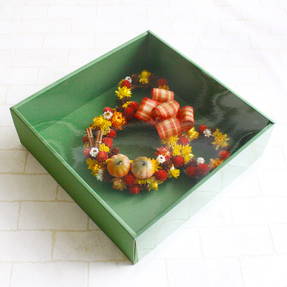 リースBOX:奥行き約31cm、幅31cm、高さ9.5cm
