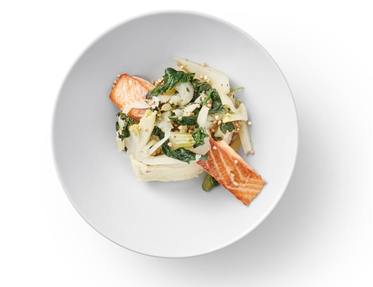 ソテーしたサーモンとフェンネル、マッシュポテトの相性が抜群な一品。