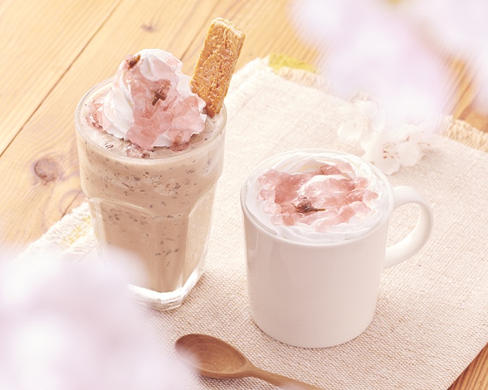 桜をテーマに淡いピンク色がかわいく、やさしい味わいのドリンク2種が登場です。