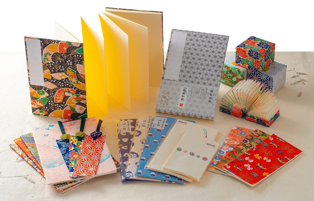 雅な柄のノート、しおり、ぽち袋などの和文具や、