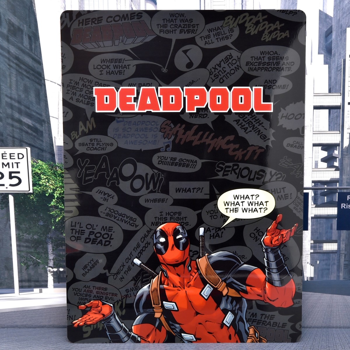 今にも飛び降りて来そうな「デッドプール」が臨場感のある大サイズと、