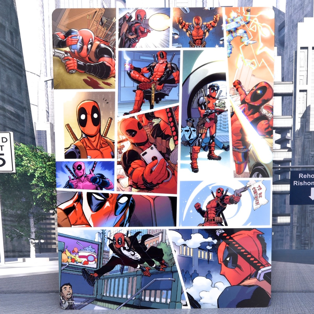 裏面は、様々に活躍する「デッドプール」のアートをコマごとに配置した贅沢なデザイン!
