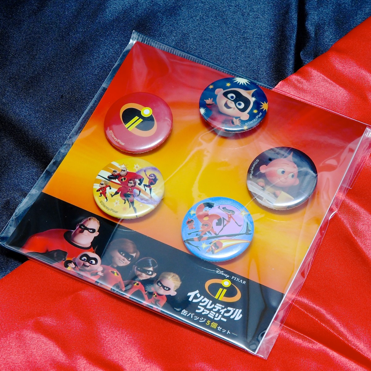 「インクレディブルファミリー」キュートなイラストが施された缶バッジ5個セット。