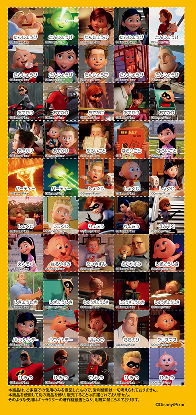 「ジャック・ジャック」や「インクレディブルファミリー」、エンブレムなどがバラエティー豊かにラインナップ。