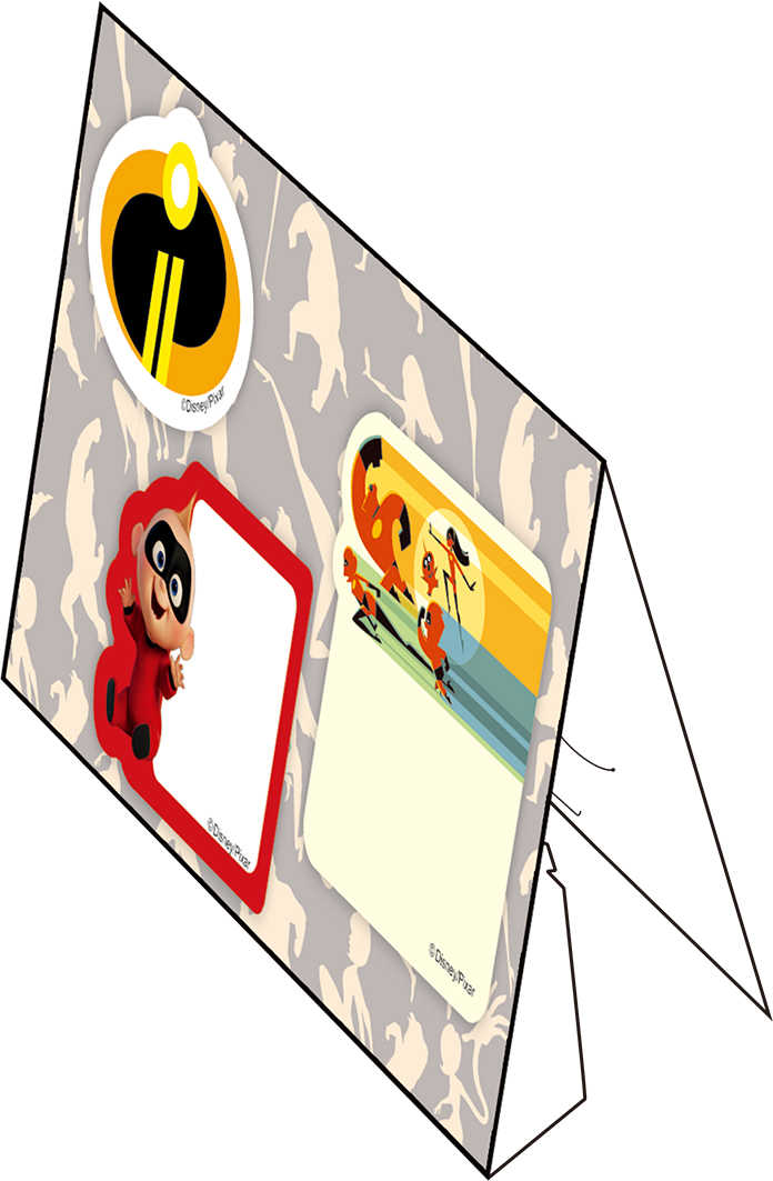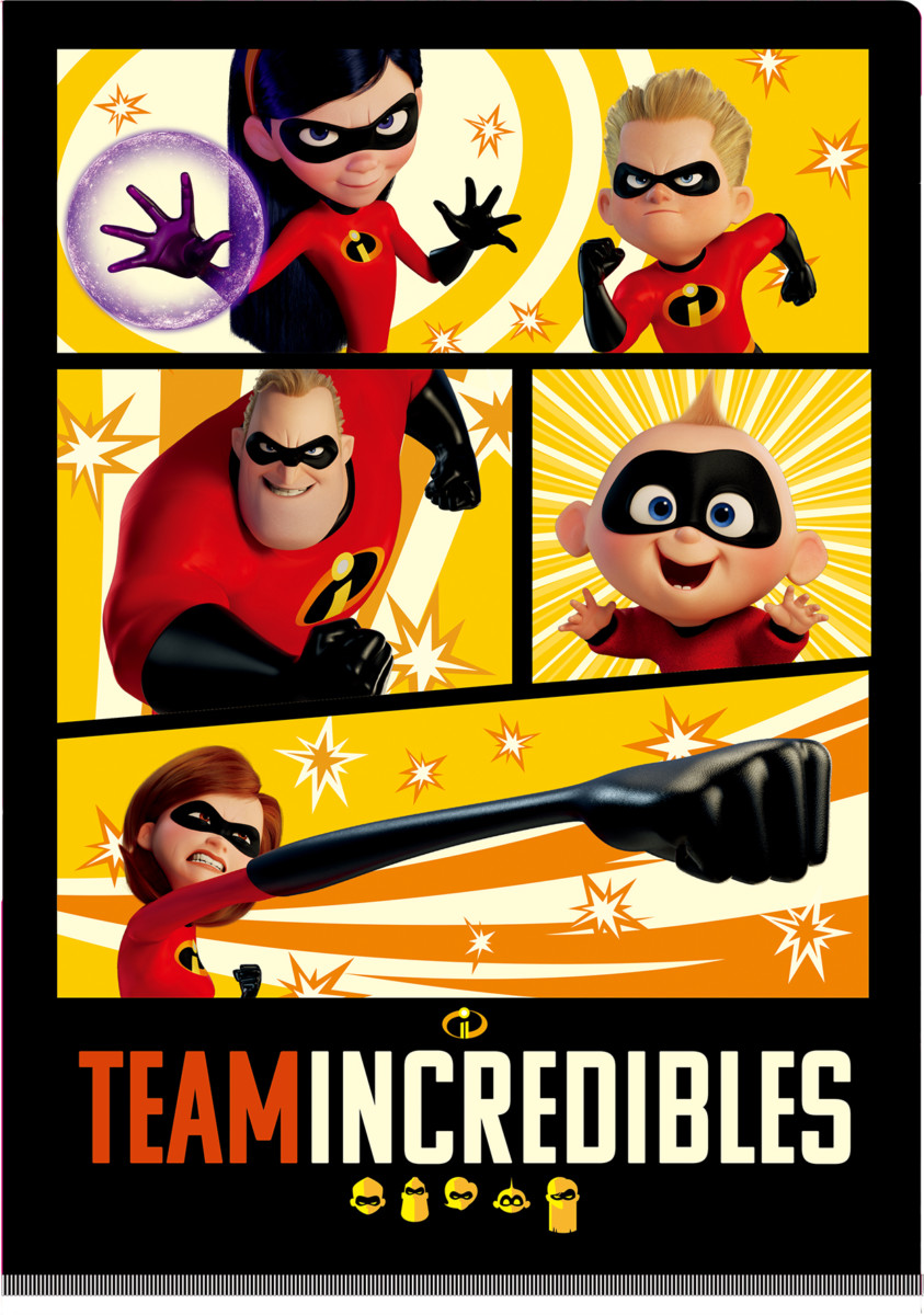 オモテ面には「チームインクレディブル」の文字と共にコマ割り風にアレンジされたファミリーがデザインされています。