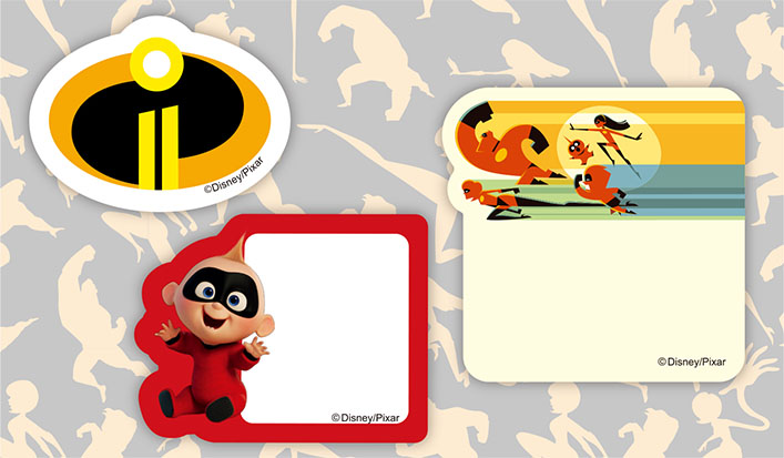 「インクレディブルファミリー」が集合したステッカーと「ジャック・ジャック」がセットになった「Aタイプ」に