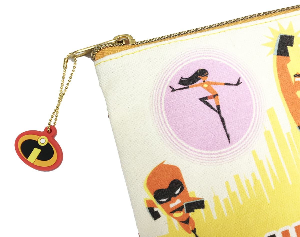 ファスナー部に「インクレディブルファミリー」のエンブレム型のラバーチャームが付いた、ハイセンスなデザインも特徴です☆