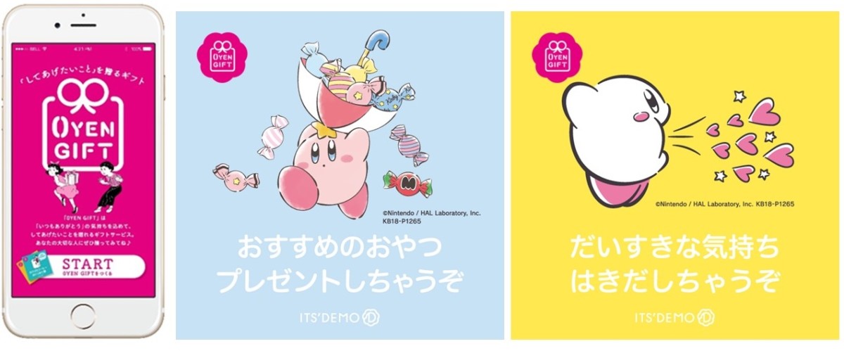 さらに、2018年10月22日(月)までの期間限定で、「イッツデモ」の人気サービス「0YEN GIFT(ゼロエン ギフト)」にて「星のカービィ」版が配信されます☆