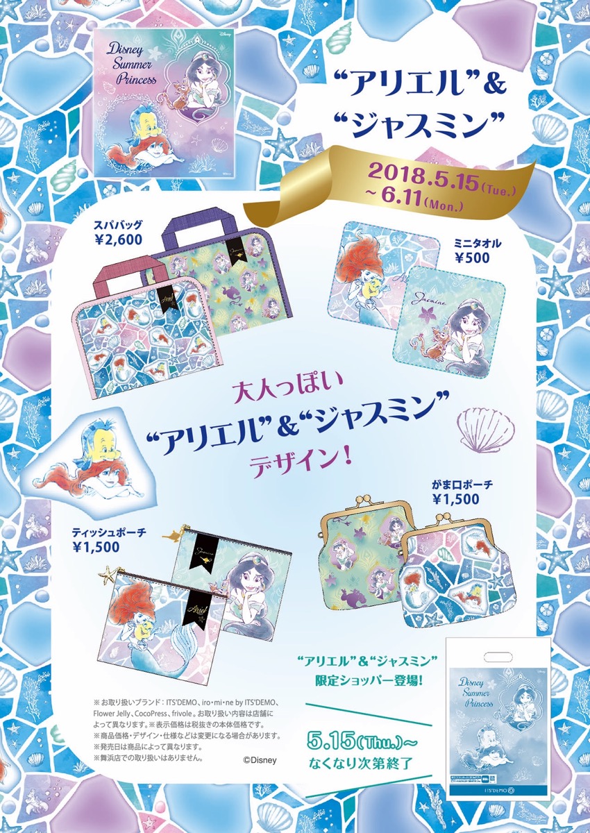 ITS’DEMO(イッツデモ) ディズニープリンセス“アリエル”&“ジャスミン”アイテムは、2018年5月15日(火)より順次発売です☆