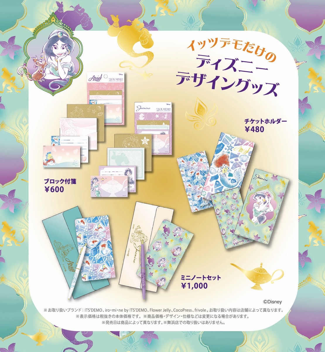 女性に向けたファッションストア「ITS’DEMO(イッツデモ)」に、ディズニープリンセス“アリエル”と“ジャスミン”のオリジナルデザイングッズが登場!