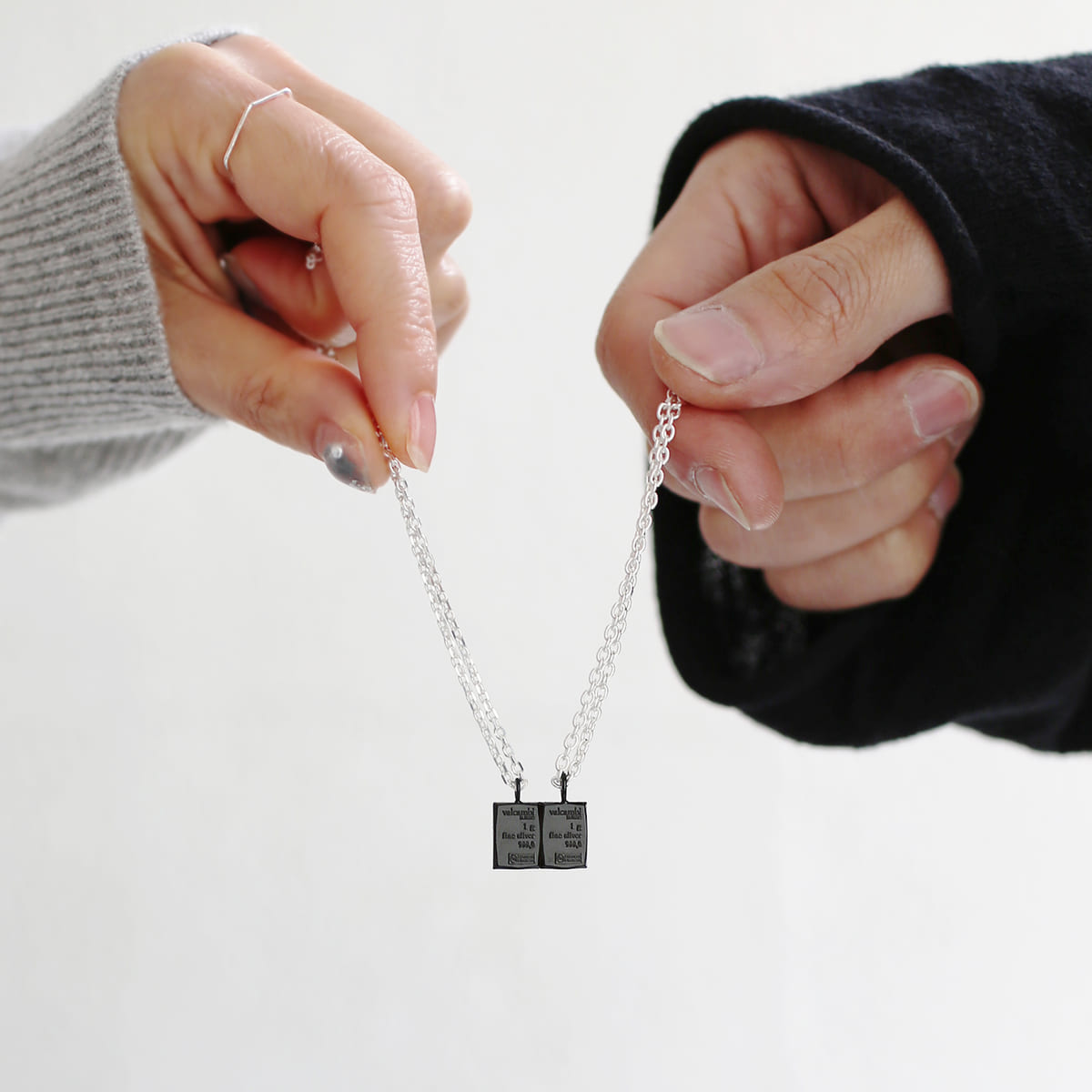 ピュアシルバーのインゴットをまるで1枚の板チョコを分け合うようにお揃いにすればふたりの絆はますます深まります☆