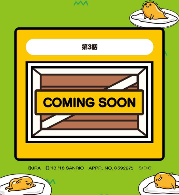 コンテンツでしか観ることのできない、アニメ「ぐでぐでケイバ」は「ぐでたまレース観戦」ほか、全3話のオリジナルショートアニメ。