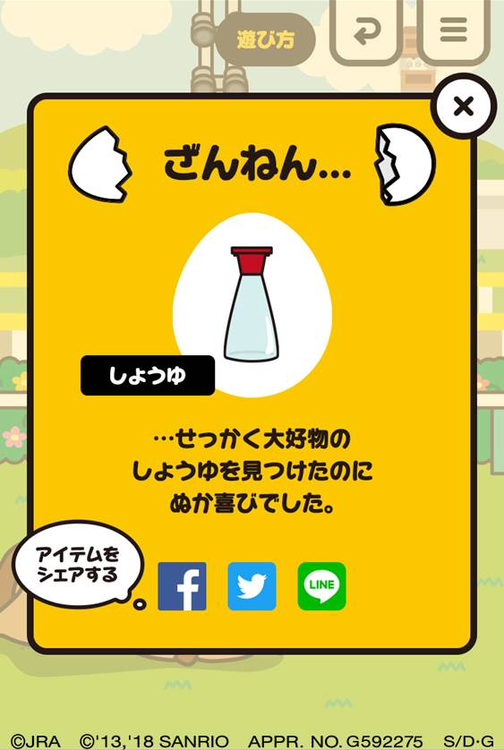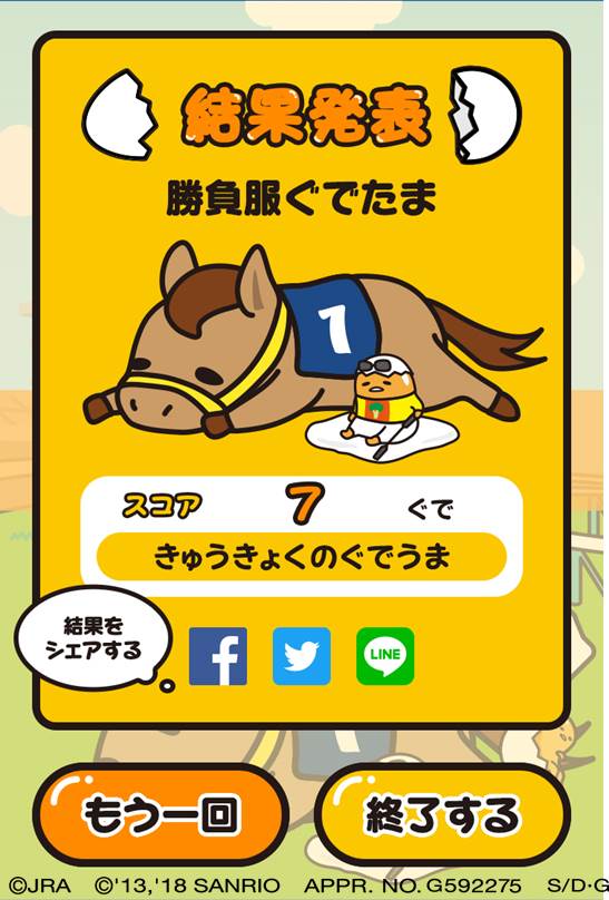 ゲーム結果をシェアすることで、お友達はもちろん、全国の「ぐでぐでケイバ」ユーザーさんと競い合えます☆