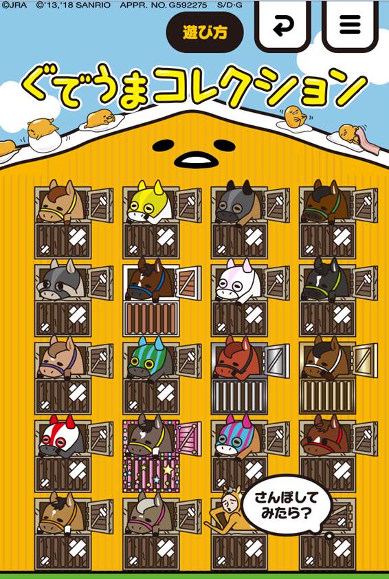 新しい「ぐでうま」に出会うことで、マイコレクションに加えることがができます。