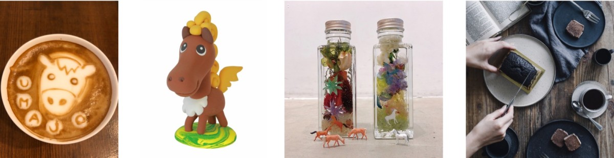 ラテアート体験やおウマのハーバリウム等のワークショップを開催。