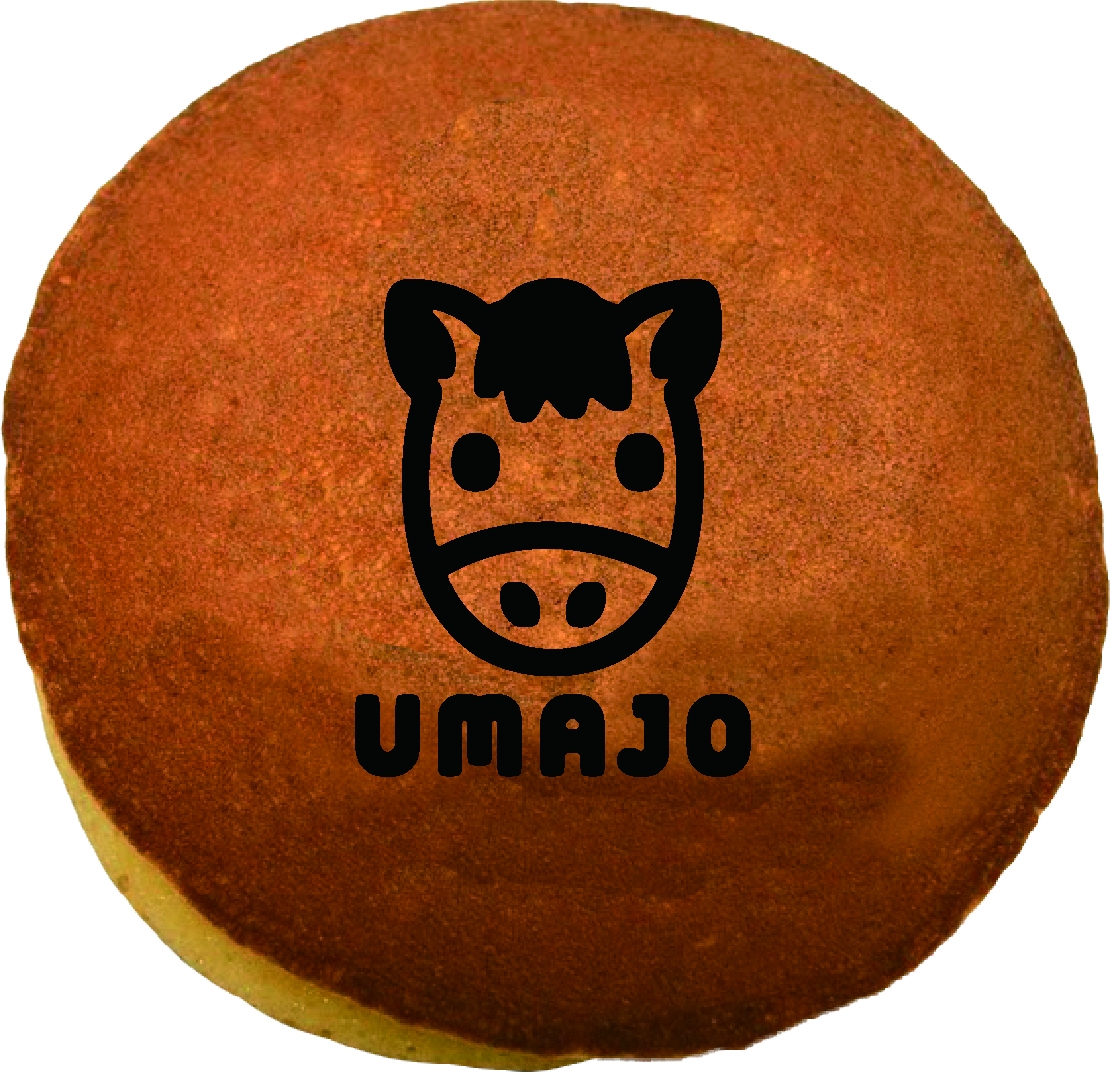 UMAJOのロゴとキュートな馬の焼き印が施された茜丸本舗のどら焼き。