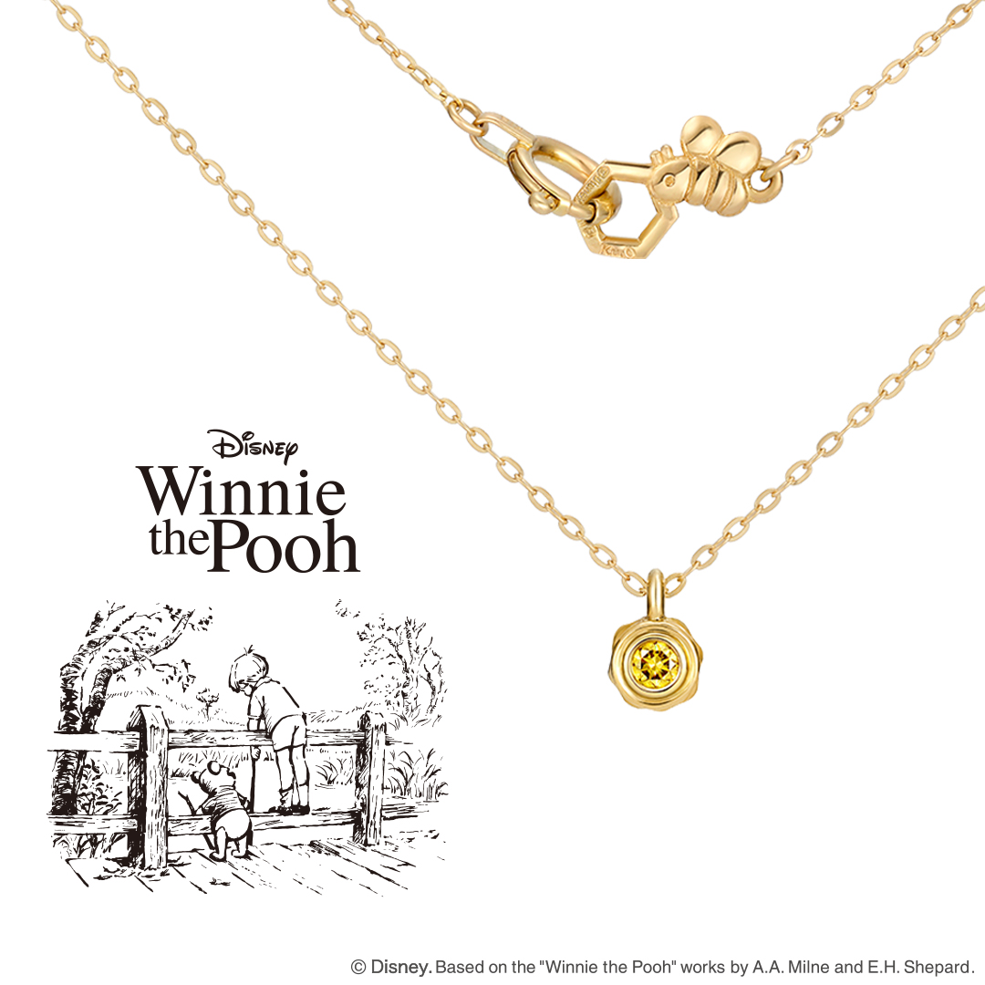 壺の中にイエローカラーのダイヤモンドを留め、プーさんと一緒に、甘く幸せなひとときを☆