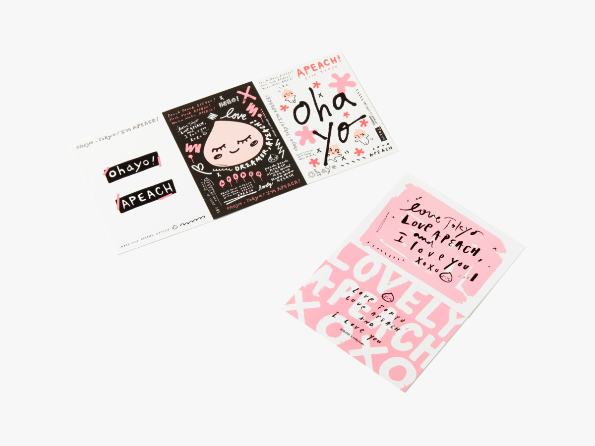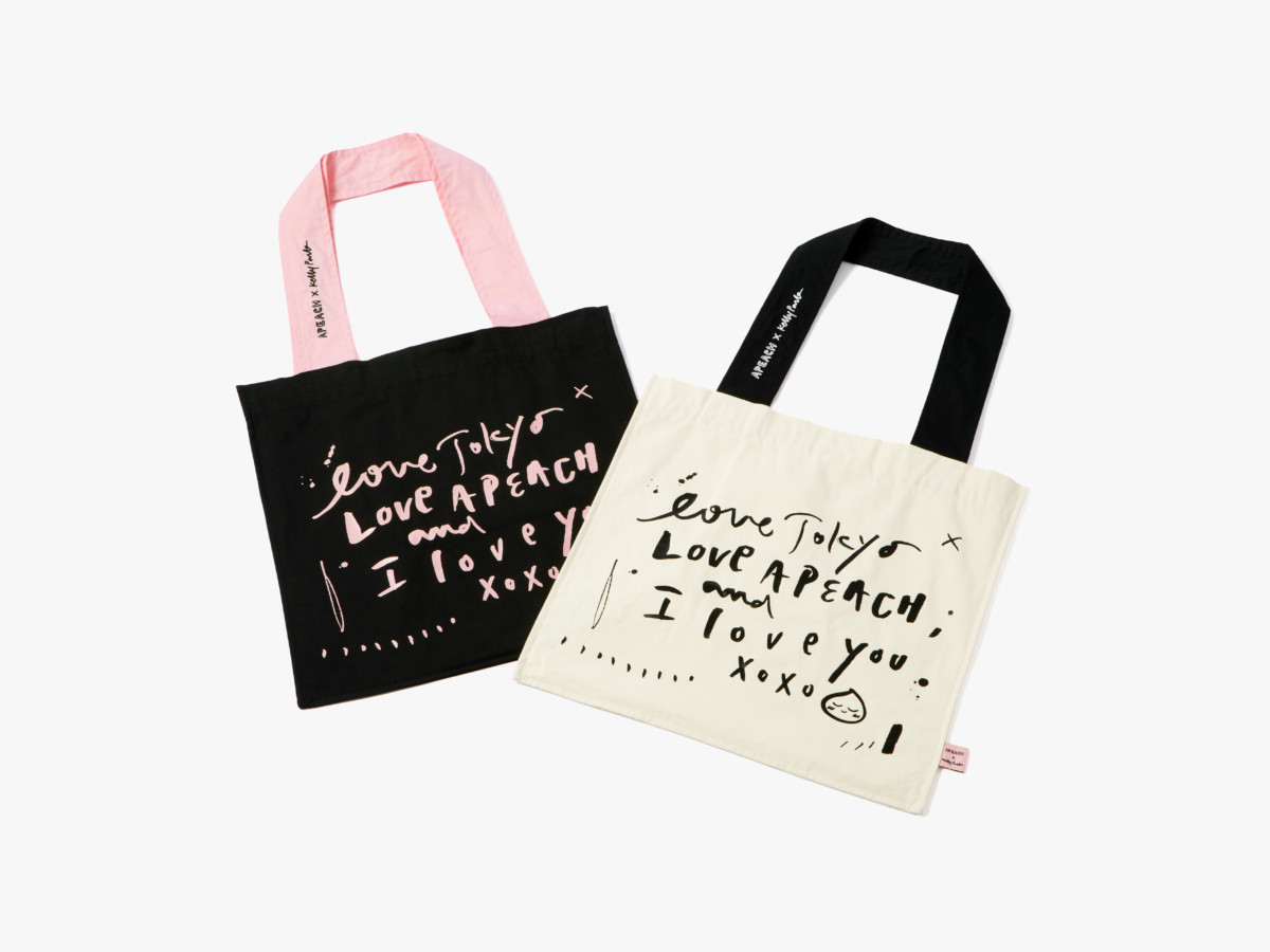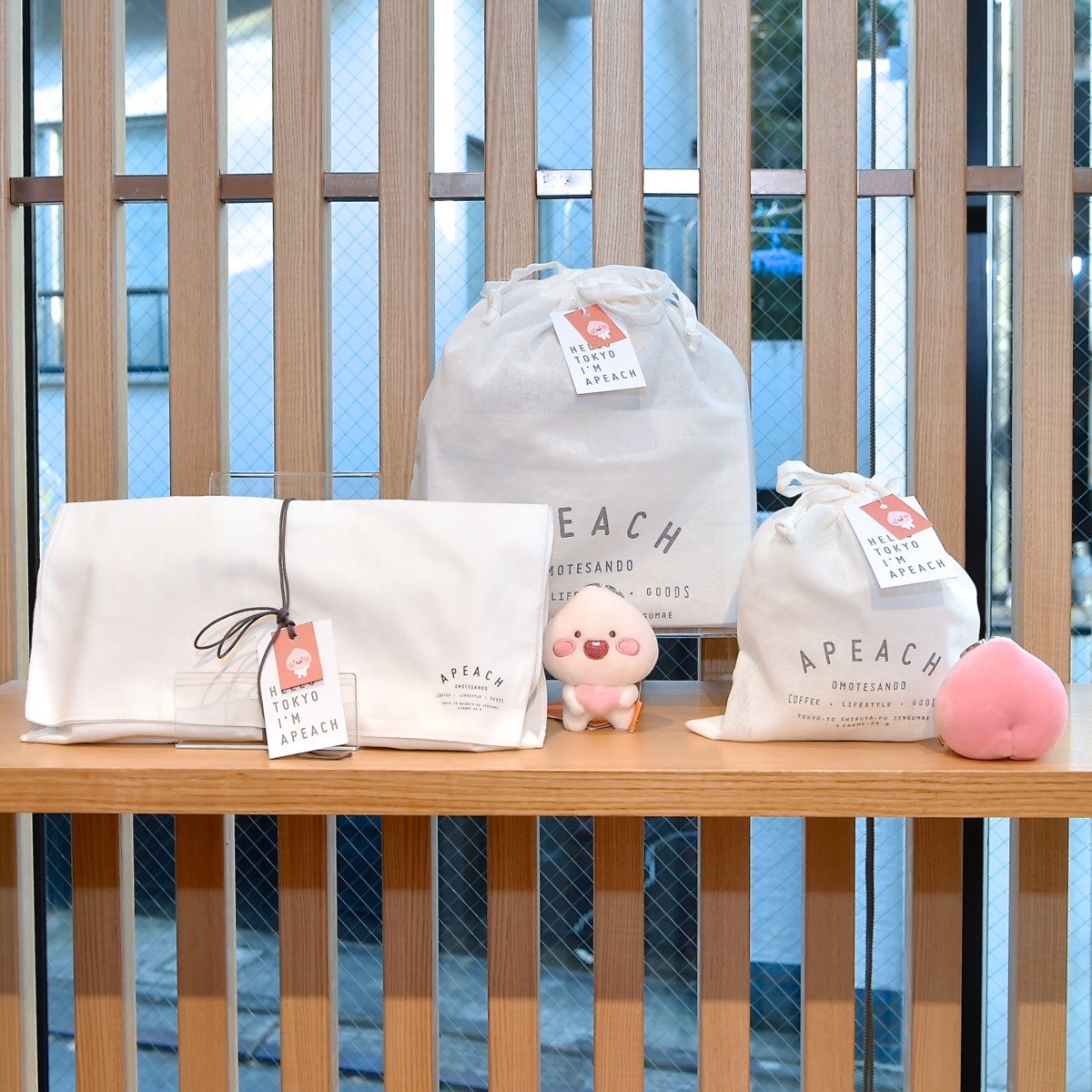 優しいハンドタッチでペイントされた文字や、アイテム左下部に描かれた「ちびアピーチ」のお顔がとってもお洒落。