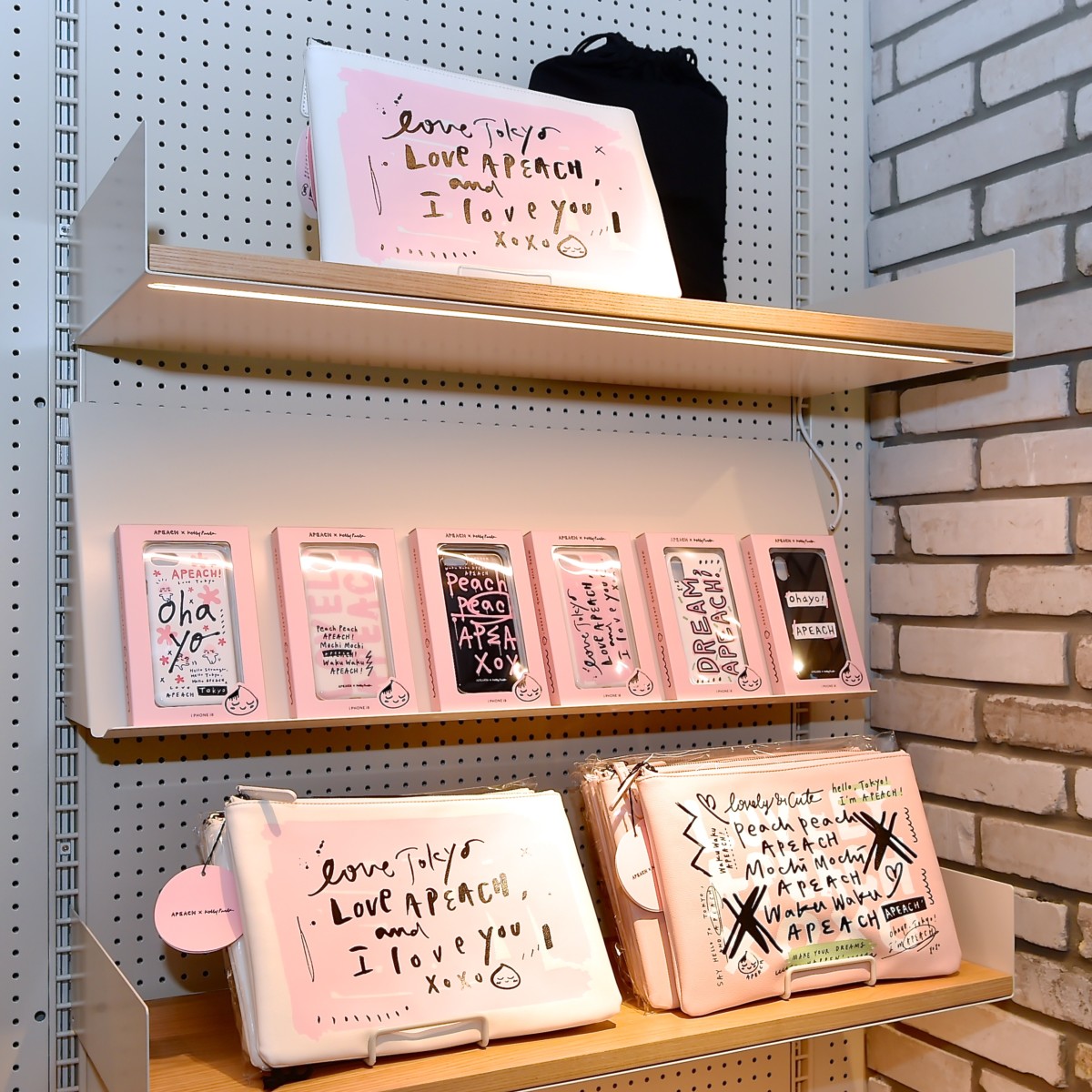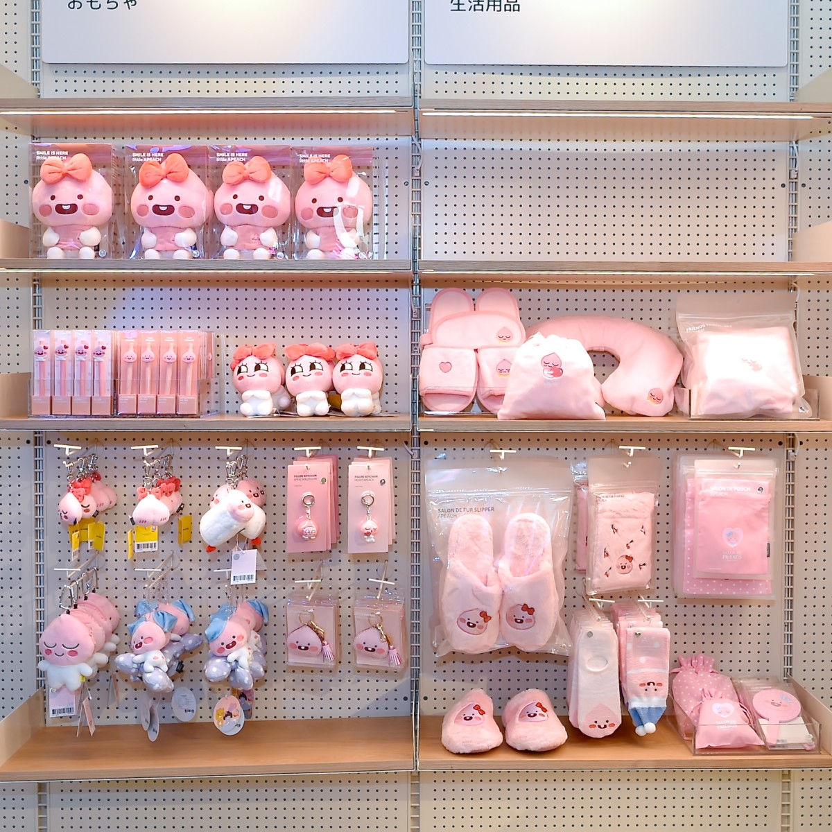 「APEACH OMOTESANDO」の1Fはいたずらっ子「アピーチ」のキュートで可愛らしい子供時代を中心にビューティー、ファッション、雑貨などを販売しているグッズストア。