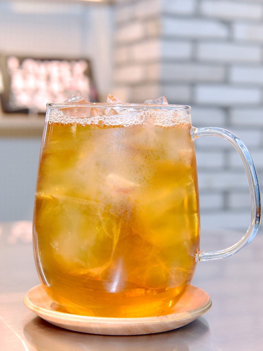 コーヒーのほろ苦さと、ザクロのほんのりとした甘さが混ざり合う、新感覚ドリンクです。