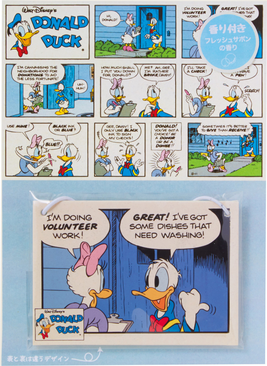ドナルド&Dのデザインはデイジーダックと電話中のドナルドダックの絵柄です。