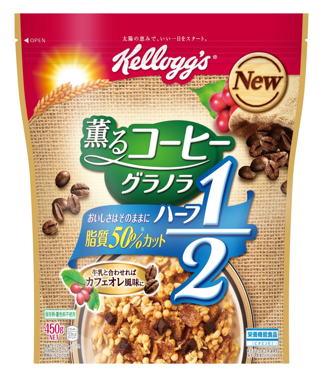 シリアル食品の世界シェアトップブランド「ケロッグ」から、脂質ハーフで人気の「フルーツグラノラ ハーフ」シリーズの新ラインナップとして、「薫るコーヒー グラノラ ハーフ」が新登場!