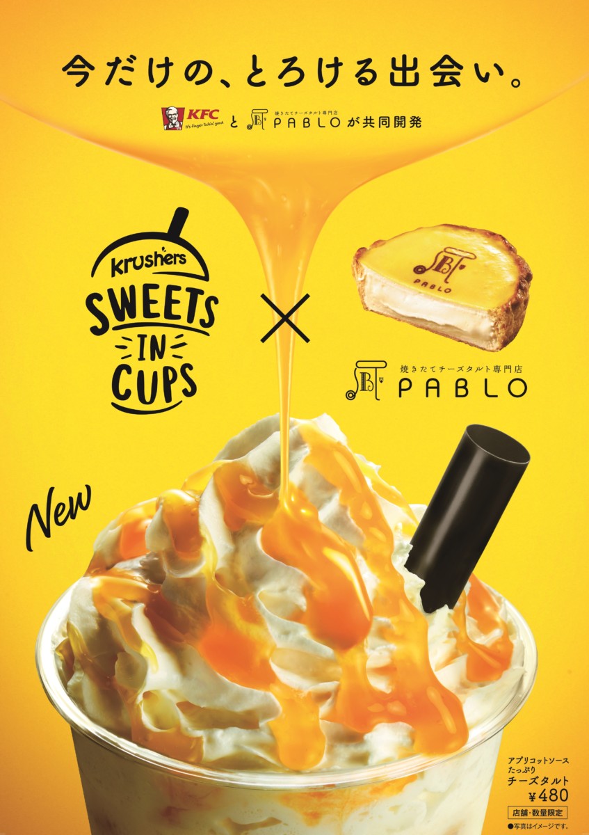 ケンタッキーフライドチキンから、焼きたてチーズタルト専門店PABLO(パブロ)と共同開発した冷たい飲むスイーツ「Krushers アプリコットソースたっぷりチーズタルト」が登場!